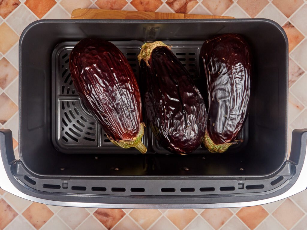 When it comes to choosing the right eggplants, size really matters. Go for small, slender ones — they cook more evenly and fit nicely in the air fryer basket, leaving space for the hot air to circulate freely.